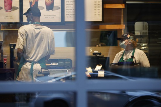 Workers are seen in a coffee shop in Washington, D.C., the United States, on May 6, 2022. (Photo by Ting Shen/Xinhua)