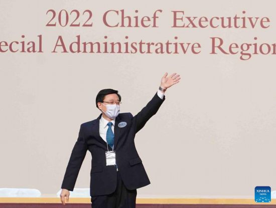 John Lee is elected as the Hong Kong Special Administrative Region's sixth-term chief executive designate in Hong Kong, south China, May 8, 2022. (Xinhua/Lui Siu Wai)
