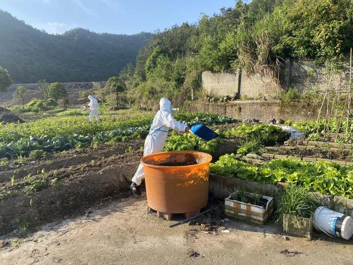 “At the beginning, we supplied insufficient water to the fields. Then Chen Binwei, who has watered fields before, taught us how to water the fields properly,” introduced Wang Nan. Afterwards, they would move onto feeding over 50 chickens and ducks. After wearing protective suits for a long period of time, they would always be drenched in sweat.
