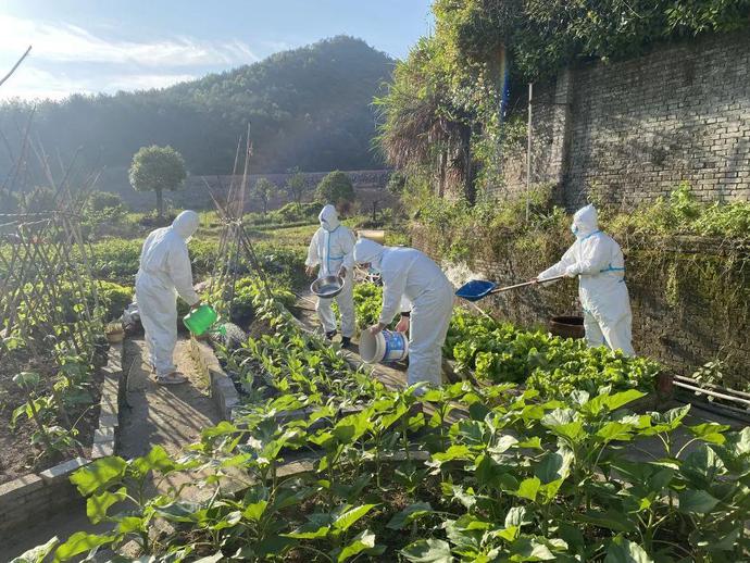 Five young epidemic control workers with little farm work experience have been busy taking care of a farm in east China's Zhejiang Province these days, as the farm’s owner is presently being held under quarantine in a closed-off management area.