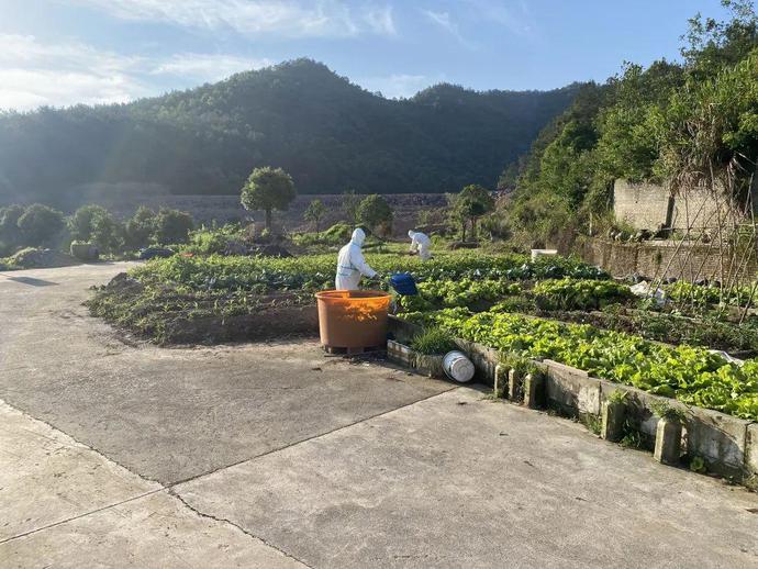 Epidemic control workers do farm work for quarantined farmer in Dongyang city of China's Zhejiang