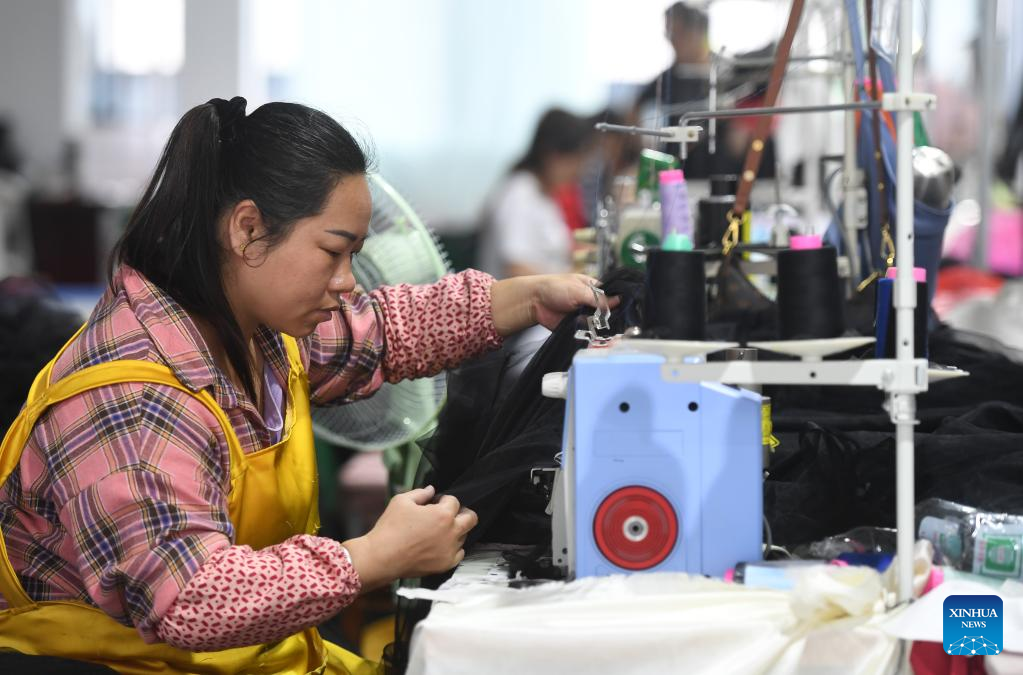A staff member works at a workshop in Fengshan County, south China's Guangxi Zhuang Autonomous Region, May 7, 2022. Donglan County, Bama Yao Autonomous County and Fengshan County of Hechi City are located in karst mountains in northwestern Guangxi.