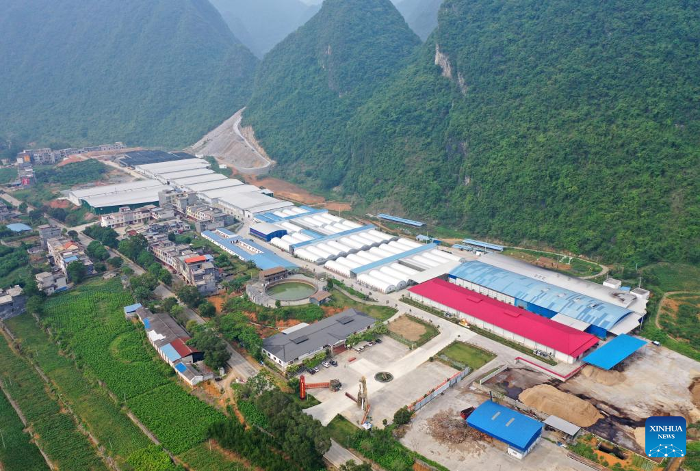 Aerial photo shows a mushroom planting base in Donglan County of south China's Guangxi Zhuang Autonomous Region, May 6, 2022. Donglan County, Bama Yao Autonomous County and Fengshan County of Hechi City are located in karst mountains in northwestern Guangxi.