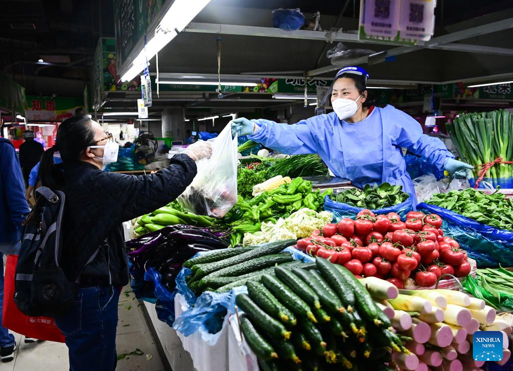 Residents buy vegetables at a market in Jiading District of east China's Shanghai, May 9, 2022. With the number of new infections continuing to go down, retail stores in Shanghai have been gradually returned to normal operation in some areas of the city. (Xinhua/Li He)