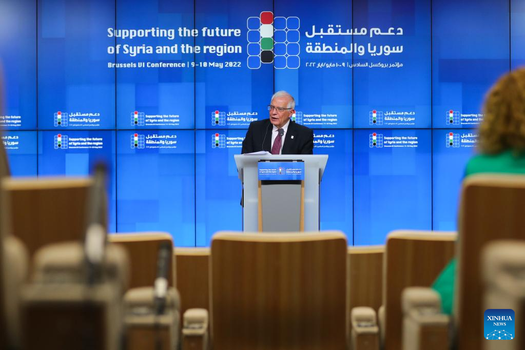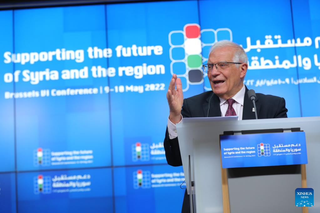 The European Union's High Representative for Foreign Affairs and Security Policy Josep Borrell attends a press conference during the sixth European Union's Conference on Supporting the Future of Syria and the Region in Brussels, Belgium, May 10, 2022. (Xinhua/Zheng Huansong)