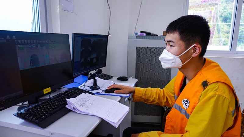 On the other side of the tunnel’s entrance, Wang Bochao, another member of the team, is mainly responsible for monitoring eight different places of importance, including the entranceway, inside the tunnel, and the inclined shaft inside the tunnel through camera feeds set up in a monitoring room.