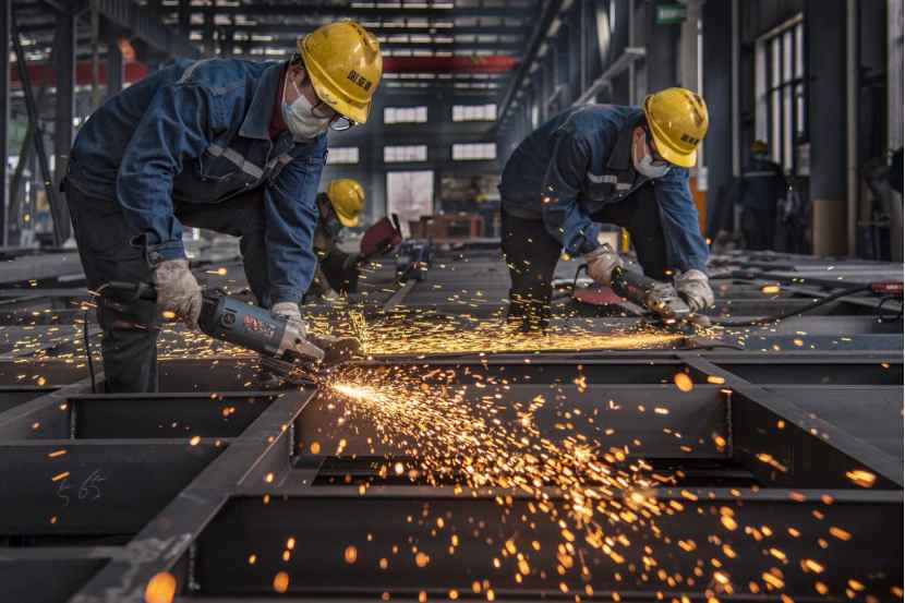 Photo shows workers busy with production at an industrial park for high-end manufacturing in the economic development zone of Dangshan county, Suzhou city, east China’s Anhui province, Dec. 14, 2021. (People’s Daily Online/Cui Meng)