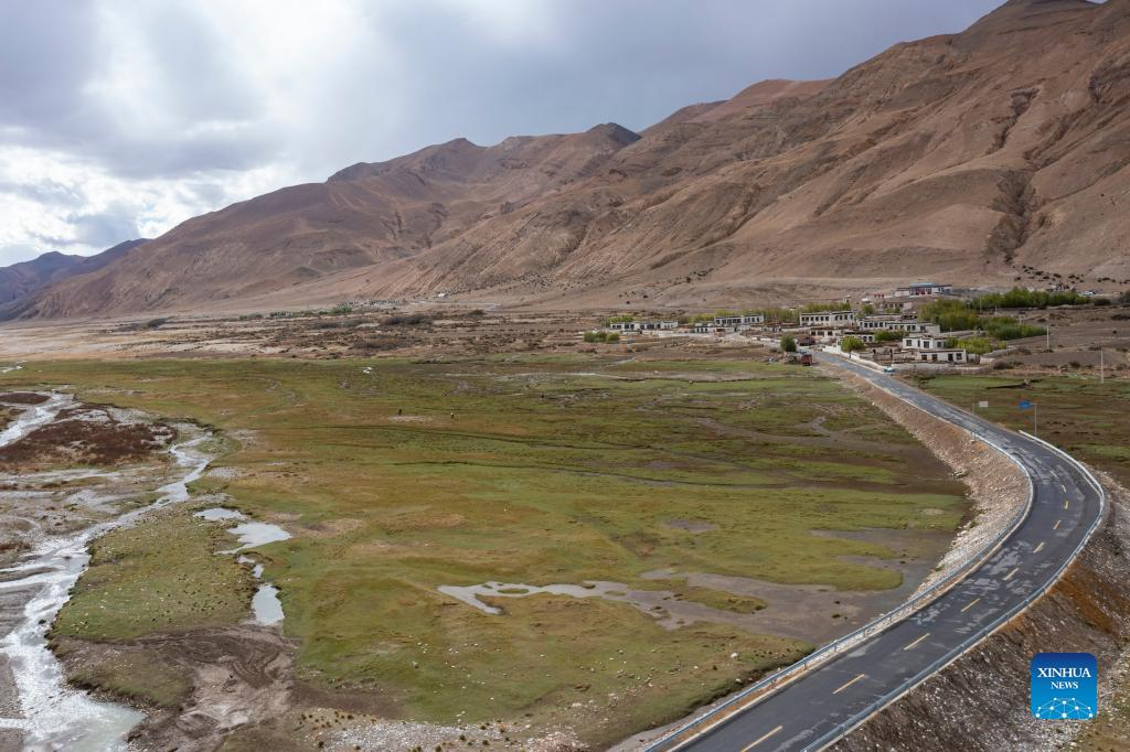 Aerial photo taken on May 11, 2022 shows wetland in the Qomolangma National Nature Reserve in Zhaxizom Township in Tingri County, southwest China's Tibet Autonomous Region. (Xinhua/Liu Ying)