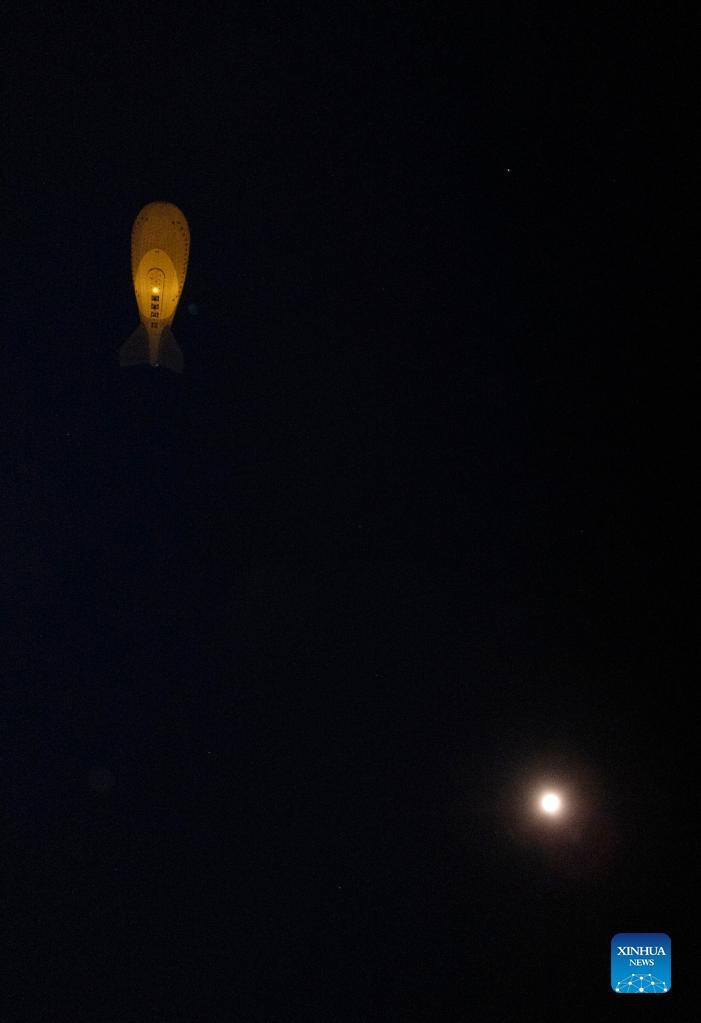 Floating airship "Jimu No.1" type III lifts off in Zhaxizom Township of Tingri County, southwest China's Tibet Autonomous Region, May 15, 2022. China's self-developed floating airship, designed for atmosphere observation, reached a record altitude of 9,032 meters in Tibet Autonomous Region on Sunday, according to its developer. Developed by the Aerospace Information Research Institute of the Chinese Academy of Sciences (CAS), the floating airship "Jimu No.1" type III has a volume of 9,060 cubic meters. (Xinhua/Sun Fei)