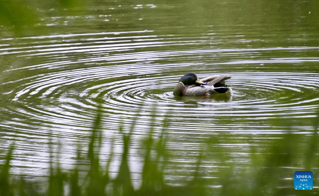 A wild duck swims in the lake in Yuanmingyuan Park in Beijing, capital of China, May 15, 2022. (Xinhua/Li Xin)