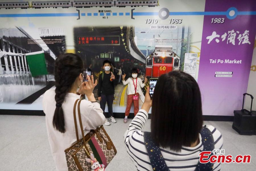 Citizen take photos at the platform of the Exhibition Center Station, the Hong Kong Special Administrative Region, May 15, 2022. (Photo: China News Service/Chen Yongnuo)