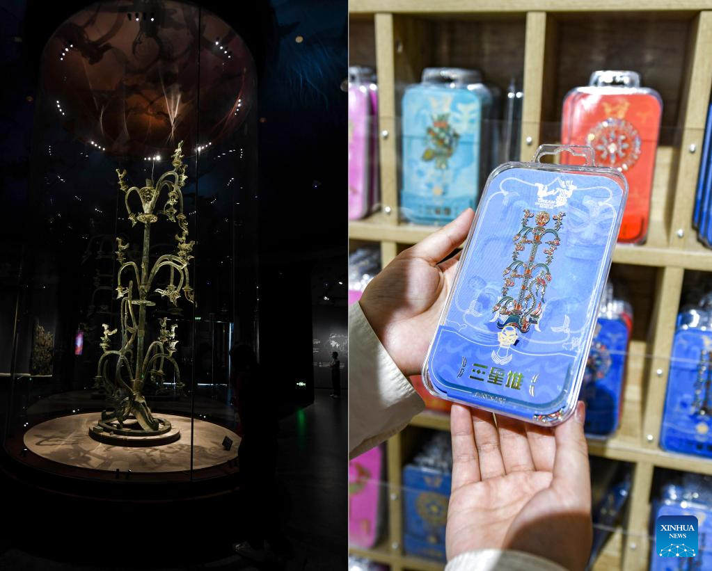 Products based on excavated cultural relics are popular among visiting tourists. (Xinhua/Wang Xi)