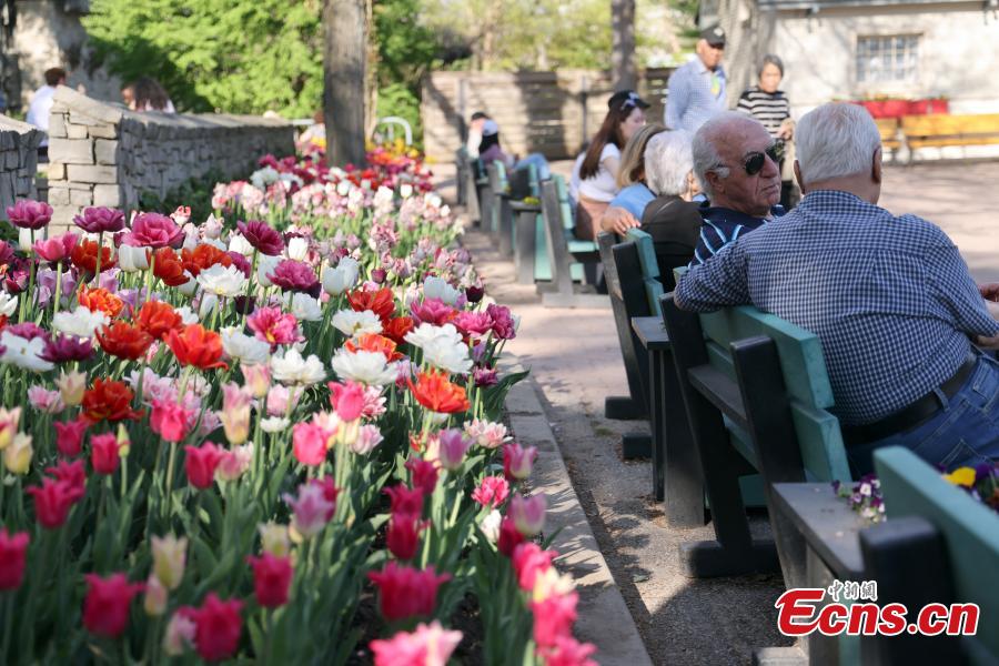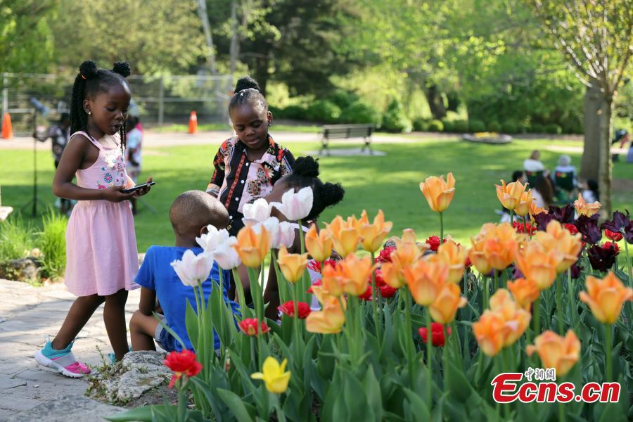 Photo shows tulip flowers of various colors in full bloom at the Toronto Botanic Garden, Toronto, Canada, May 15, 2022. (Photo: China News Service/Yu Ruidong)