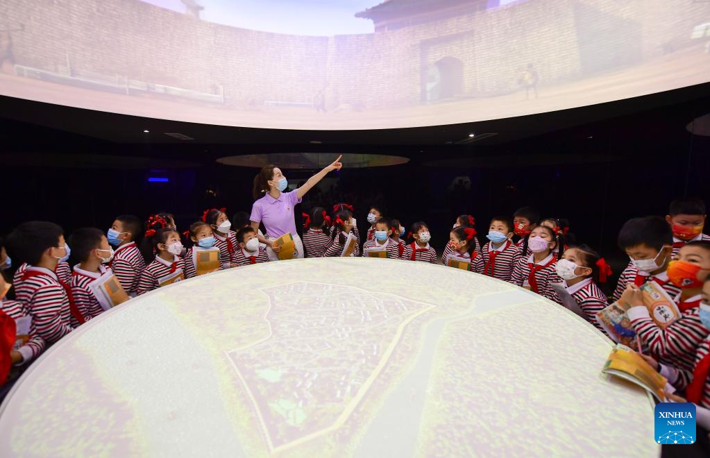 (220517) -- GANZHOU, May 17, 2022 (Xinhua) -- Students visit a museum in Ganzhou, east China's Jiangxi Province, May 17, 2022. The International Museum Day, which falls on May 18, is being celebrated with a variety of online and offline activities across China. (Photo by Hu Jiangtao/Xinhua)
