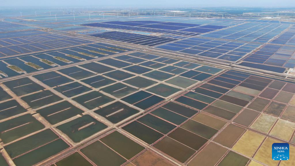 Photo taken on May 14, 2022 shows salt fields at Binhai Township, Zhanhua District, Binzhou City of east China's Shandong Province. (Xinhua/Fan Changguo)