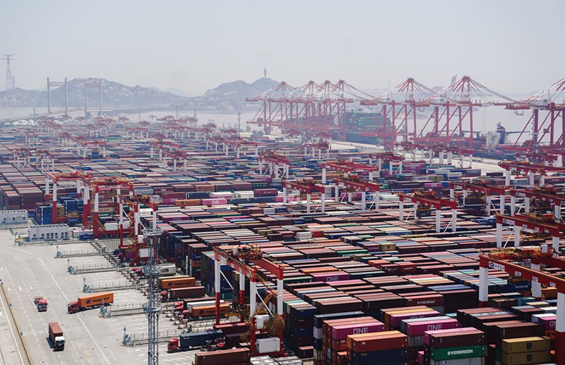 Photo taken on May 17, 2022 shows a view of Shanghai Yangshan Deep Water Port. (Xinhua/Ding Ting)
