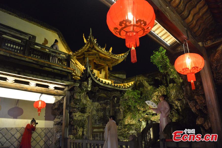 Visitors watch a traditional performance at the Three Lanes and Seven Alleys, a street district featuring a cluster of ancient residential buildings and the largest well-preserved historical district in China, May 18, 2022. (Photo: China News Service/Zhang Bin)
