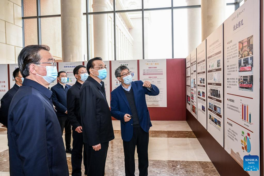 Chinese Premier Li Keqiang, also a member of the Standing Committee of the Political Bureau of the Communist Party of China Central Committee, hears a briefing on the employment and entrepreneurship situations of college graduates in Yunnan University in Kunming, southwest China's Yunnan, May 18, 2022. Li made an inspection tour in Qujing and Kunming of southwest China's Yunnan Province from Tuesday to Thursday. (Xinhua/Rao Aimin)
