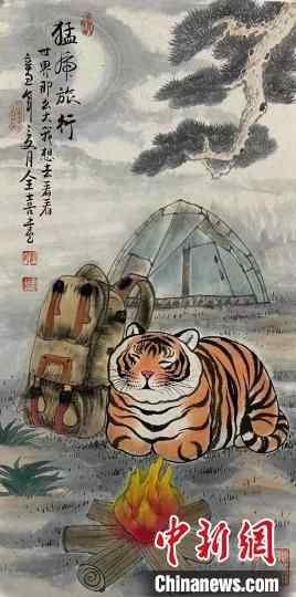Photo shows a tiger-themed picture drawn by Zhao Quanxi. (Photo provided by the interviewee)