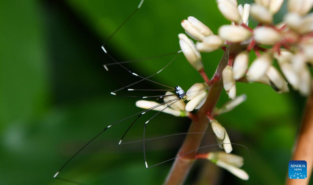 An opiliones is seen in the Wuzhishan section of the Hainan Tropical Rainforest National Park in south China's Hainan Province, May 3, 2022. Wuzhishan section is a core part of the Hainan Tropical Rainforest National Park. The national park, covering 4,269 square km, is home to the most concentrated and well-preserved tropical rainforests in China. (Xinhua/Yang Guanyu)