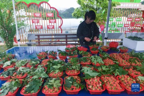Photo shows raspberries on sale at a village in Linqi township, Chun’an county, Hangzhou. (Photo/Xinhua)