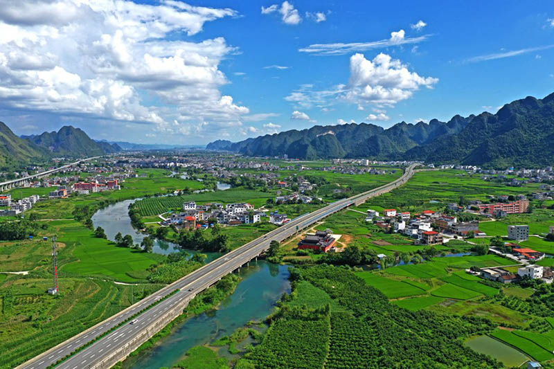 Aerial photo taken on Aug. 31, 2021 shows the countryside scenery of Gaoling Township in Du'an Yao Autonomous County, south China's Guangxi Zhuang Autonomous Region. (Xinhua/Zhou Hua)