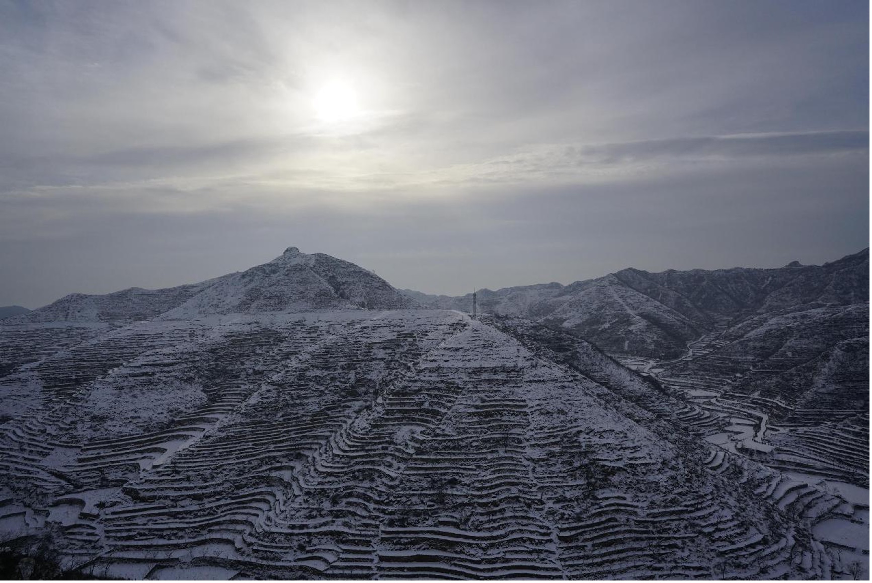 Photo shows a view of snow-covered terraced fields in Houchi village, Shexian county, Handan city, north China’s Hebei province. (Photo by Wang Jianzheng/People’s Daily Online)