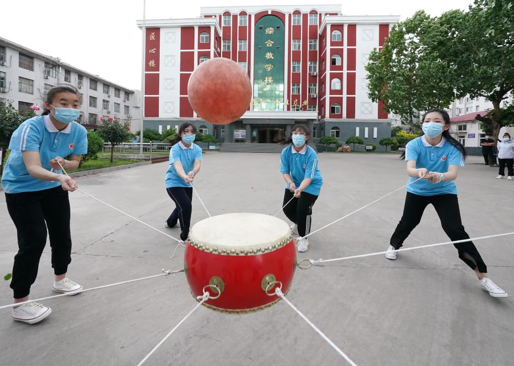 China's national college entrance exam for 2022, also known as Gaokao, will be held on June 7 and 8. With COVID-19 control measures put in place, schools in Hebei Province have organized various activities to help students relax and stay in their best shape for the approaching examination. (Photo by Zhang Xiaofeng/Xinhua)