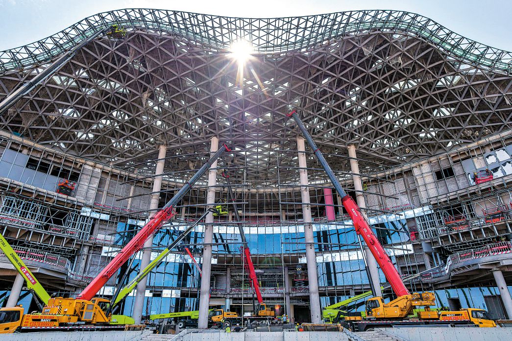 The construction site of the ongoing Haikou International Duty Free City project is seen in Hainan province in March. The project covers a planned area of more than 920,000 square meters. [Photo/China News Service]