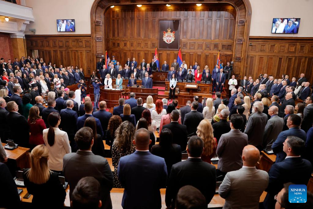 Aleksandar Vucic is sworn in at the National Assembly for his second term as president of Serbia, in Belgrade, Serbia, on May 31, 2022. (Photo by Predrag Milosavljevic/Xinhua)