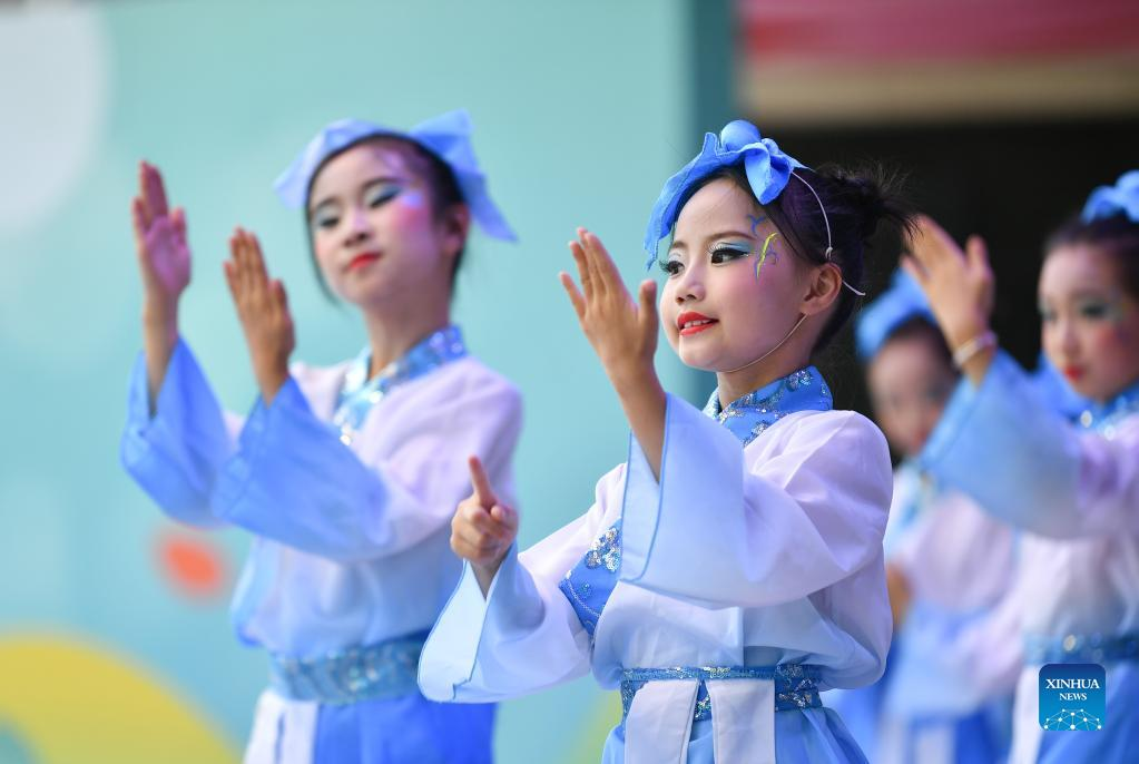 Children take part in a performance to celebrate the International Children's Day at Houzaimen primary school in Xincheng District of Xi'an, northwest China's Shaanxi Province, June 1, 2022. (Xinhua/Zhang Bowen)