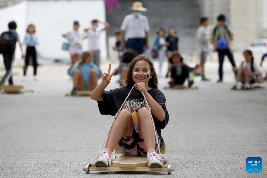 Children attend an activity promoted by the Portuguese Public Security Police (PSP) to celebrate International Children's Day in Lisbon, Portugal, on June 1, 2022. (Photo by Pedro Fiuza/Xinhua)