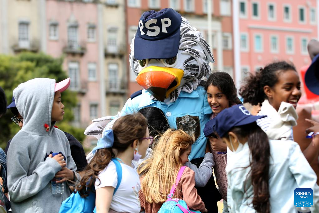 Children attend an activity promoted by the Portuguese Public Security Police (PSP) to celebrate International Children's Day in Lisbon, Portugal, on June 1, 2022. (Photo by Pedro Fiuza/Xinhua)