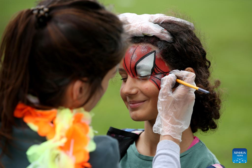 A child has her face painted during an activity promoted by the Portuguese Public Security Police (PSP) to celebrate International Children's Day in Lisbon, Portugal, on June 1, 2022. (Photo by Pedro Fiuza/Xinhua)