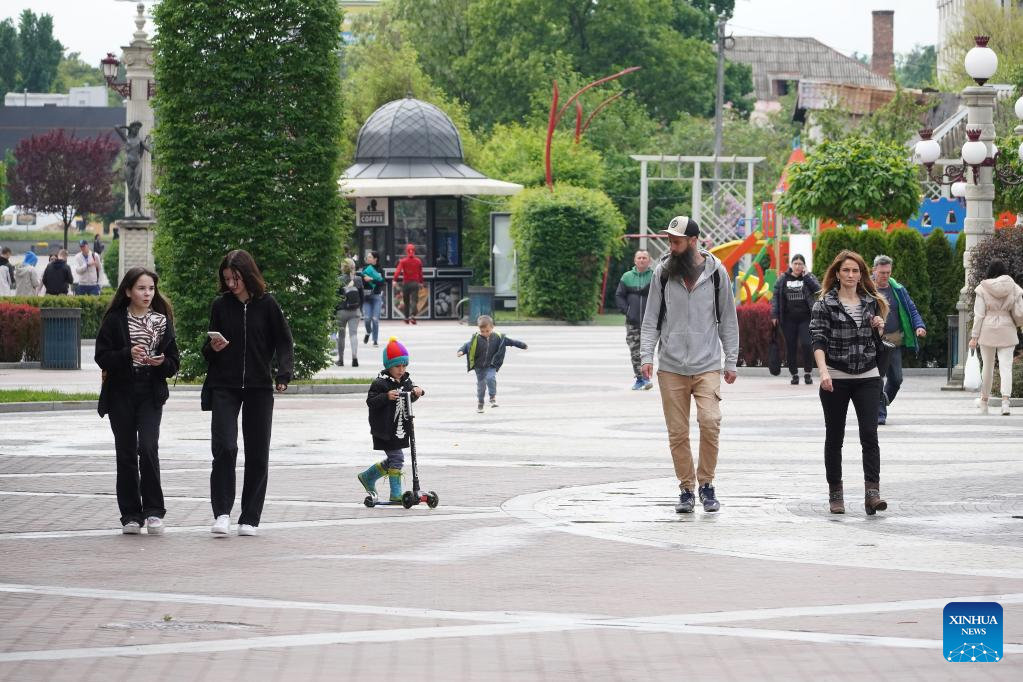 People walk on a square in Irpin, Ukraine, May 31, 2022. (Photo by Roman Petushkov/Xinhua)