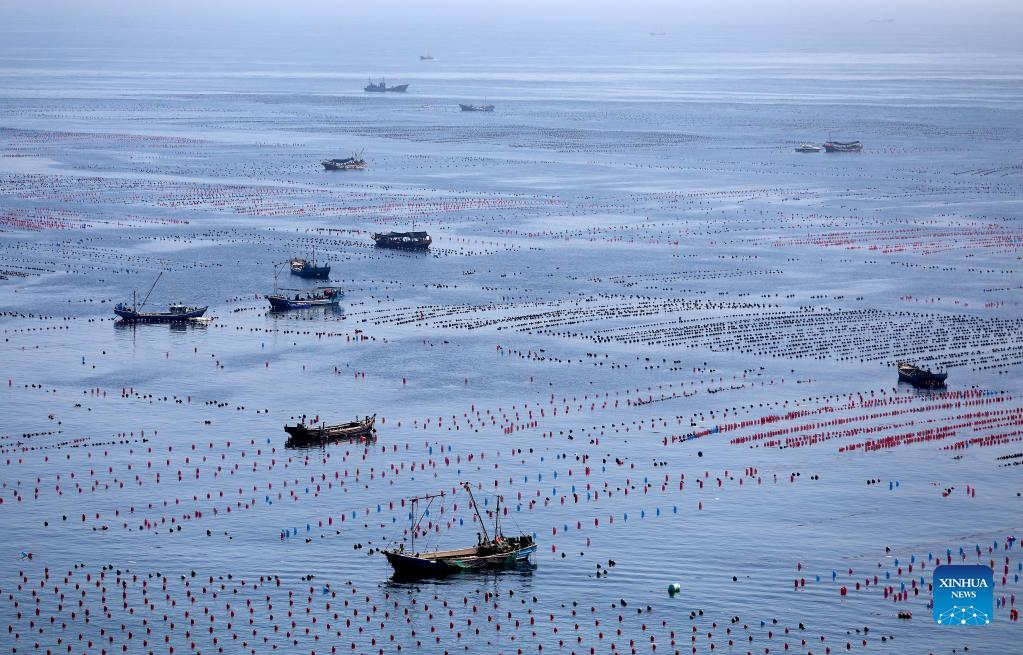 Fishermen work at marine ranch in Haiyangdao Township of Changhai County in Dalian, N China's Liaoning (2)