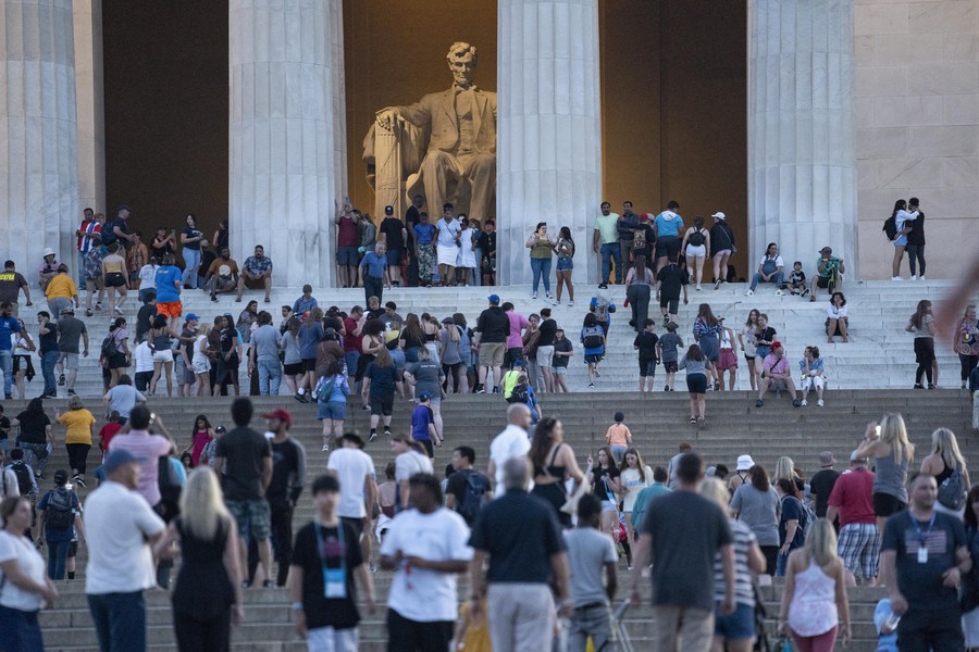 People visit the Lincoln Memorial in Washington, D.C., the United States, May 30, 2022. (Xinhua/Liu Jie)
