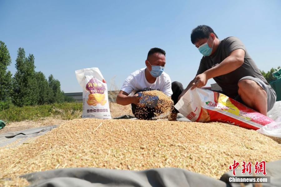Farmers harvest wheat in a wheat field in Beijie village, Xingtai, north China's Hebei Province, June 5, 2022. (Photo: China News Service/Song Jie)
