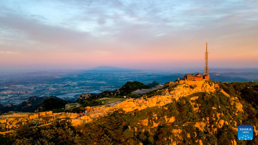 Aerial photo taken on May 26, 2022 shows the scenery of Mount Taishan in east China's Shandong Province. (Xinhua/Guo Xulei)