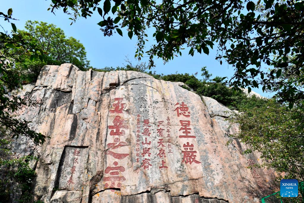 Photo taken on May 24, 2022 shows stone inscriptions of Mount Taishan in east China's Shandong Province. (Xinhua/Guo Xulei)