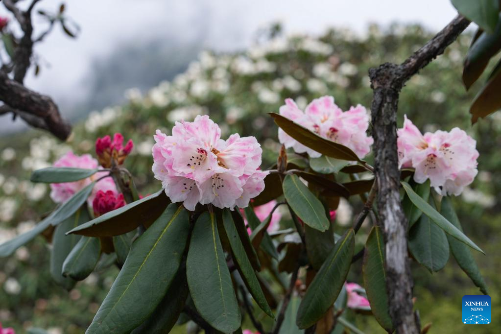Blossoms of alpine azalea are seen at Giant Panda National Park in Longmen Mountains in southwest China's Sichuan Province, June 5, 2022. (Xinhua/Jiang Hongjing)