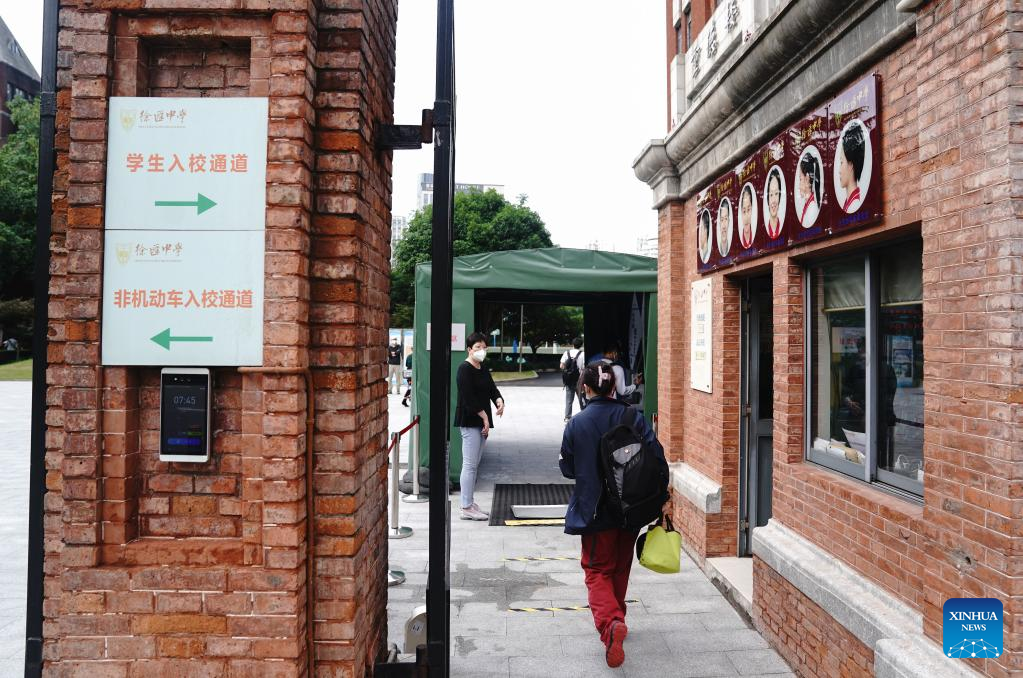 Students walk into Xuhui High School in Shanghai, east China, June 6, 2022.