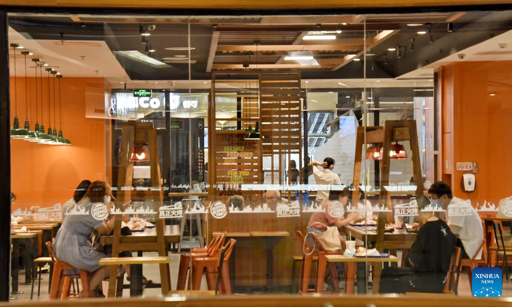 Customers have meals in a restaurant in a shopping mall in Chaoyang District of Beijing, capital of China, June 6, 2022.
