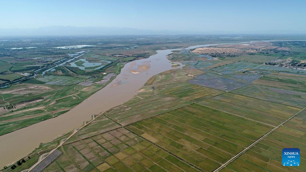 Aerial photo taken on June 5, 2022 shows fields along the banks of the Yellow River in northwest China's Ningxia Hui Autonomous Region. (Xinhua/Wang Peng)