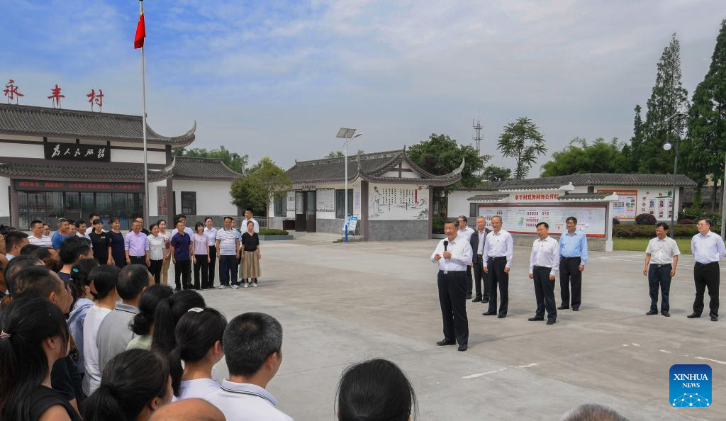 Xi on Wednesday inspected the city of Meishan. (Xinhua/Shen Hong)