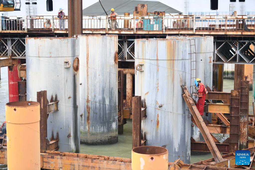 Upon completion, the link will improve transportation in the area and be an important piece of infrastructure in the Greater Bay Area, which covers Hong Kong and Macao special administrative regions, and nine cities in south China's Guangdong Province, including capital Guangzhou as well as Shenzhen. (Xinhua/Deng Hua)