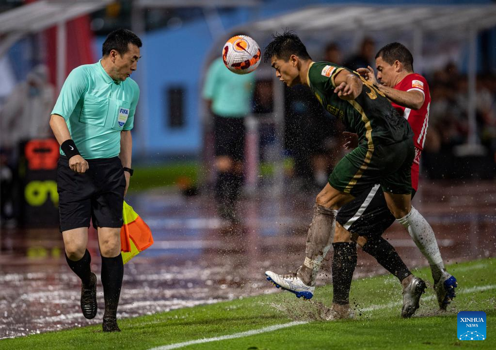 Felipe de Sousa Silva (C) of Chengdu Rongcheng competes during a 2022 season Chinese Football Association Super League (CSL) match between Beijing Guoan and Chengdu Rongcheng in Meizhou, south China's Guangdong Province, June 8, 2022. (Xinhua/Sun Fei)
