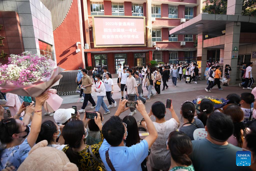 Examinees walk out of an exam site in Xi'an, northwest China's Shaanxi Province, June 8, 2022.