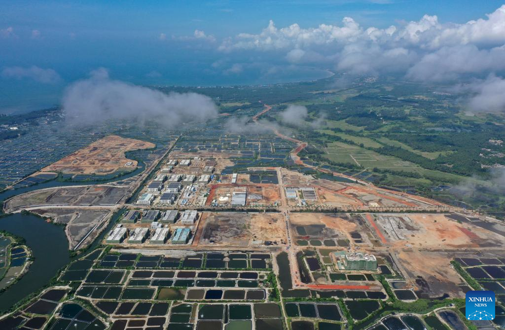 Aerial photo taken on June 1, 2022 shows a view of Fengjiawan Modern Fishery Industrial Park under construction in Wenchang, south China's Hainan Province. (Xinhua/Guo Cheng)