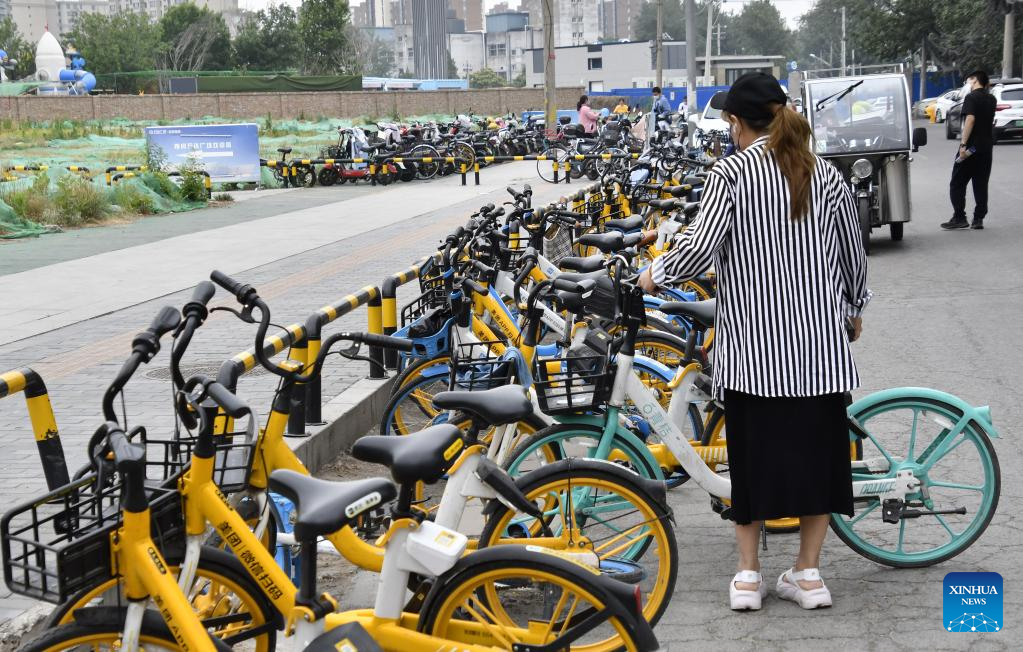 A citizen rides a shared bike in Fengtai District, Beijing, capital of China, June 9, 2022.